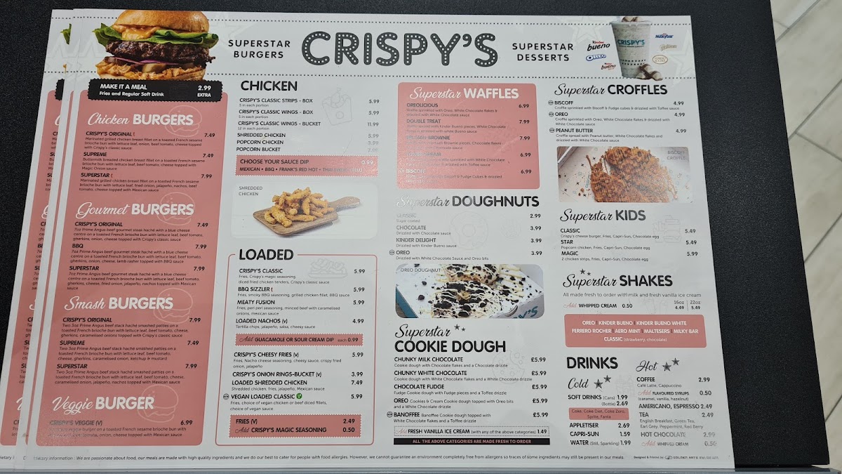 Welcome to Crispy's, a culinary gem nestled in Plymouth at 134 Armada Way. This establishment offers a mouthwatering menu focusing on flavorful chicken dishes and indulgent desserts. Start with their Crispy's Classic Strips or savory Classic Wings, served in boxes or buckets perfect for sharing. The Superstar Shakes, including Oreo and Ferrero Rocher, provide the ideal sweet sip to accompany your meal.